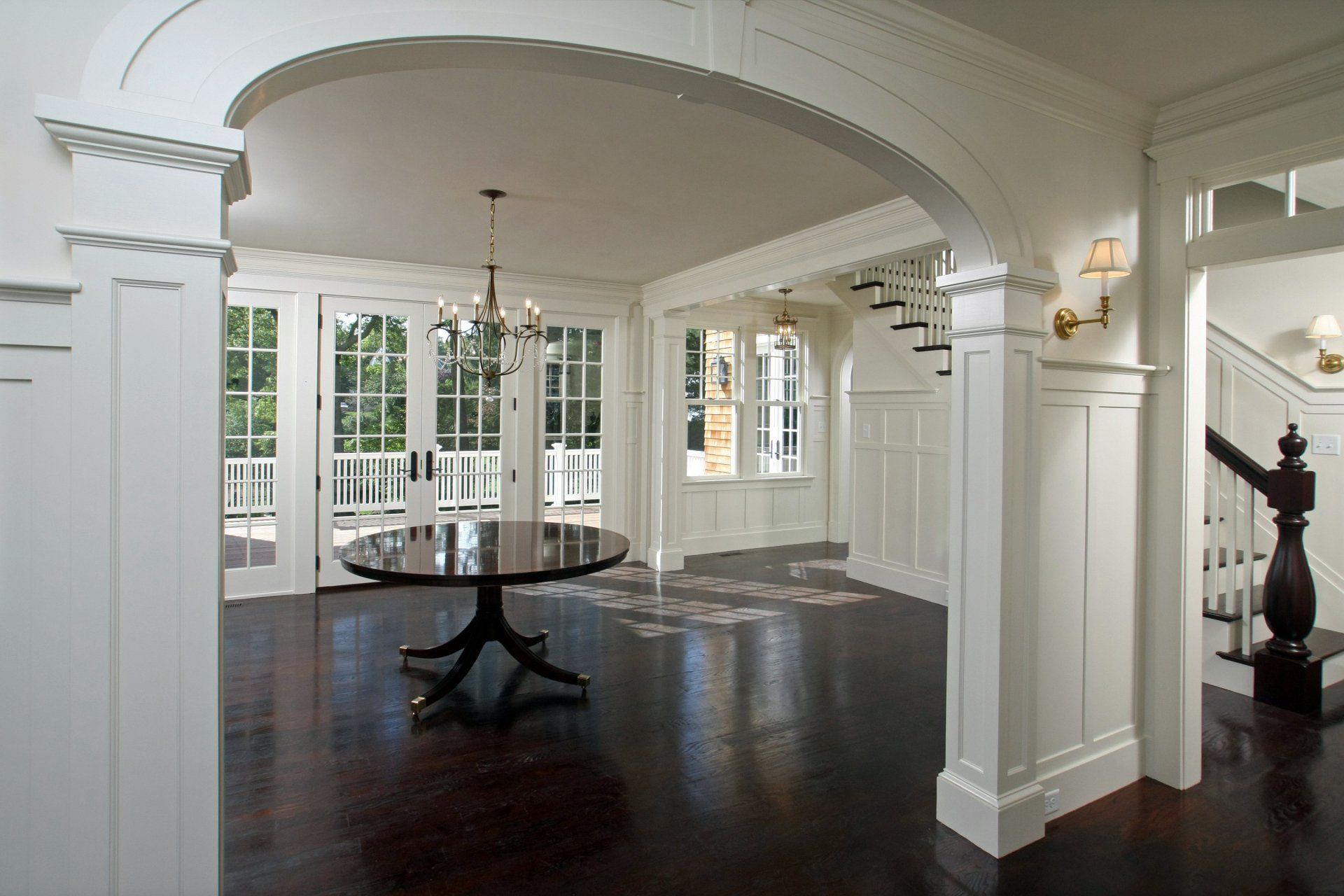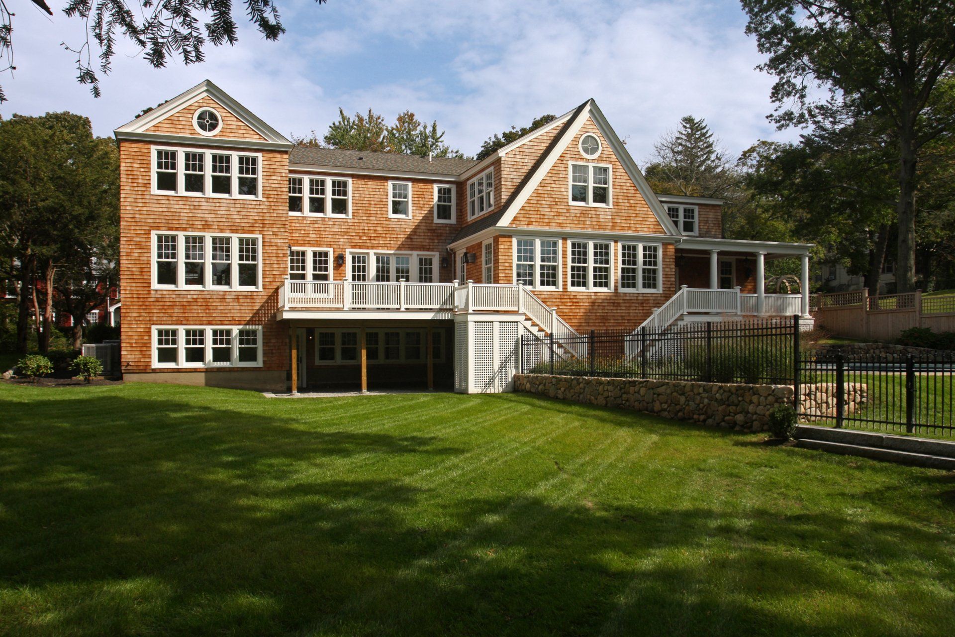 This is a before and after story. The original house was demolished and a new custom designed shingle style home was constructed in its place.