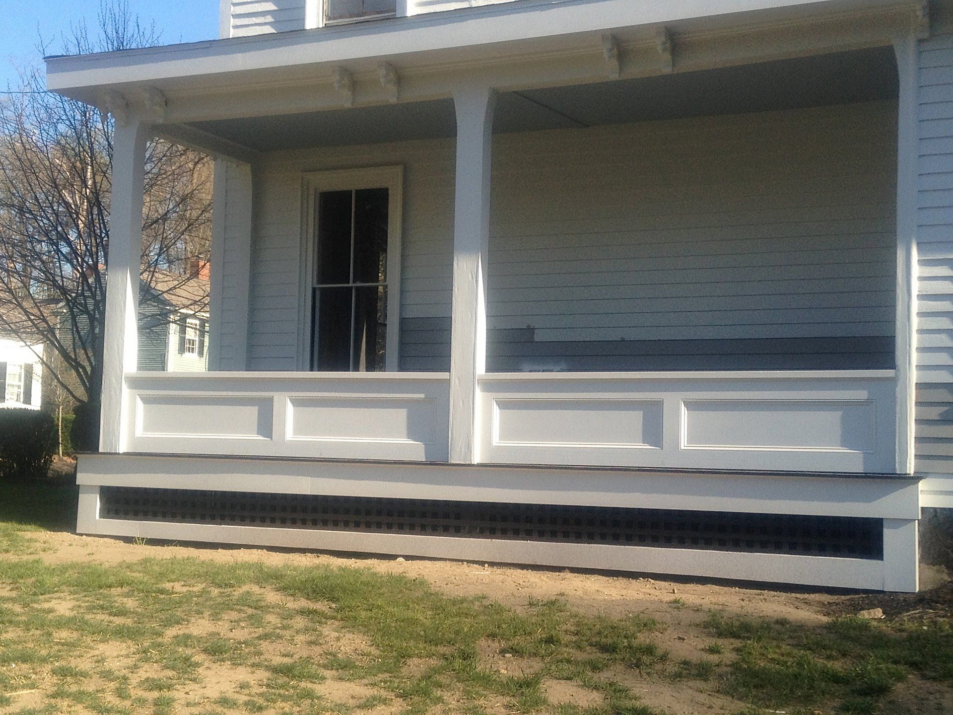 This classic New England Victorian home required exterior and interior restoration and refresh. The side porch was rebuilt with original details and mahogany flooring.  Original moldings and a side entrance elegantly upgraded. Inside, two renovated baths and a new kitchen.